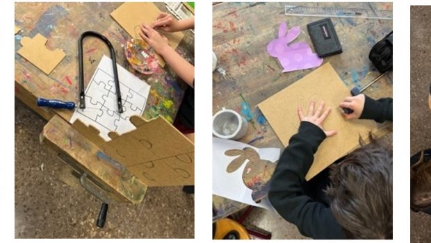 Ortstermin im März. Mittwoch. 15 Uhr. Werkraum der DSB. Der TaschenSpiegel schaut zehn Schülerinnen und Schülern während der Nachmittagsaktivität „Werken“ über die Schulter. Aus quadratischen Spanholzplatten erstellt der talentierte und motivierte Nachwuchs neunteilige Puzzles mit Ostermotiven....